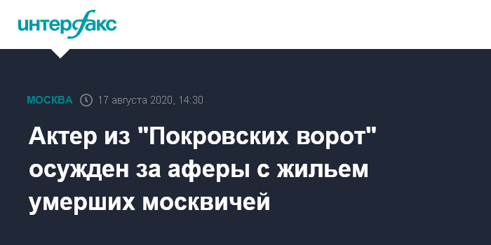 Актер из "Покровских ворот" осужден за аферы с жильем умерших москвичей