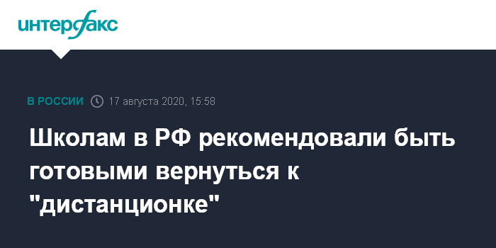 Москва. 17 августа. INTERFAX.RU - Школам рекомендуют готовиться к обучению в дистанционном режиме, если ситуация с распространением новой коронавирусной инфекции ухудшится.