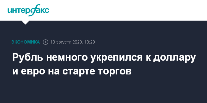 Как отмечают эксперты "Интерфакс-ЦЭА", рубль немного повышается к доллару и евро на старте торгов, корректируясь вверх после заметной просадки по итогам понедельника. Инвесторы продолжают следить за развитием отношений Вашингтона и Пекина, в которых наблюдается очередной виток напряженности. Внимание участников внутреннего валютного рынка также обращено на риски участия России в политическом кризисе в Белоруссии и возможную реакцию на это со стороны западных стран.
