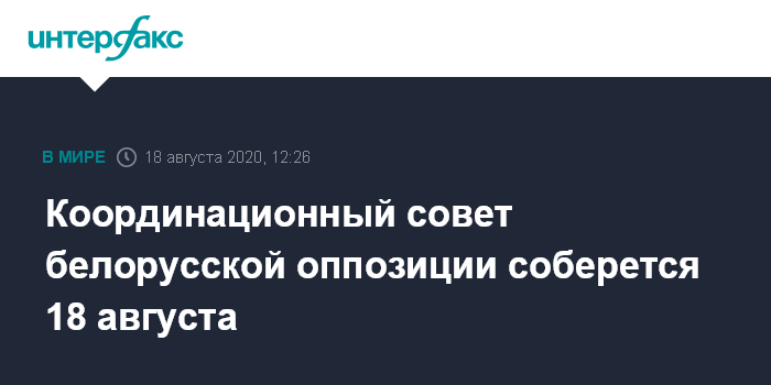 Москва. 18 августа. INTERFAX.RU - Координационный совет оппозиции Белоруссии во вторник проведет первое заседание и затем даст пресс-конференцию, сообщила Мария Колесникова, бывшая глава избирательного штаба банкира Виктора Бабарико и соратница Светланы Тихановской.