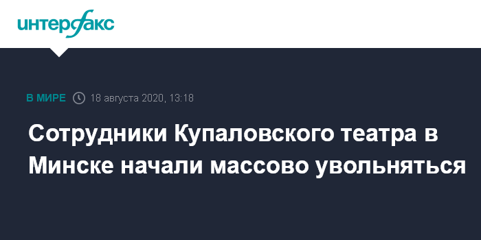 Москва. 18 августа. INTERFAX.RU - Более 80 актеров и работников Национального академического театра имени Янки Купалы в Минске написали заявления об увольнении, сообщают Naviny.by.