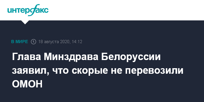 Москва. 18 августа. INTERFAX.RU - Глава Минздрава Белоруссии Владимир Караник заявил, что машины "скорой помощи" не использовались для перевозок милиционеров, разгонявших или задерживавших протестующих в дни массовых акций после 9 августа. Об этом он написал в открытом письме для TUT.BY.