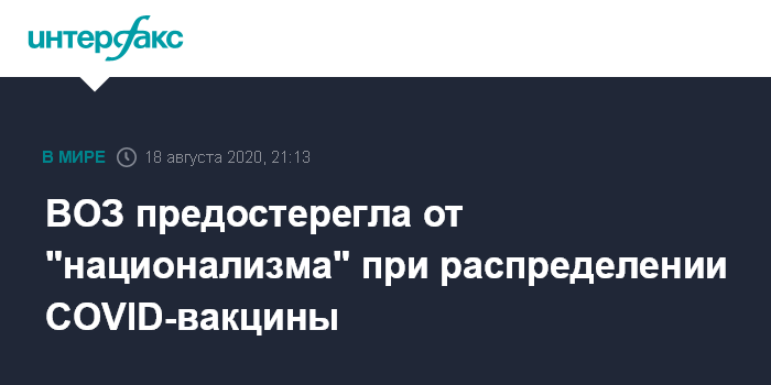 ВОЗ предостерегла от "национализма" при распределении COVID-вакцины