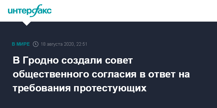 Москва. 18 августа. INTERFAX.RU - Гродненский горисполком опубликовал обращение к жителям Гродно, в котором сообщается о выполнении требований участников массовых митингов протеста, которые прошли в городе в последние дни.