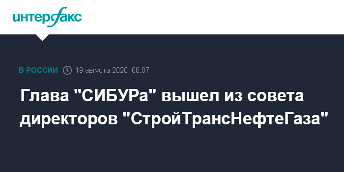 Москва. 19 августа. INTERFAX.RU - Глава "СИБУРа" Дмитрий Конов сообщил, что вышел из совета директоров АО "СтройТрансНефтеГаз", который принадлежал Геннадию Тимченко.