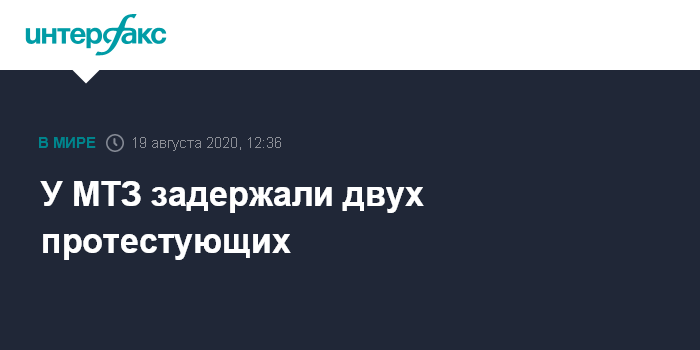 Москва. 19 августа. INTERFAX.RU - У проходной Минского тракторного завода милиция задержала двух участников несанкционированного массового мероприятия, сообщили в МВД Белоруссии. По версии милиции, демонстранты мешали заводчанам пройти на работу.