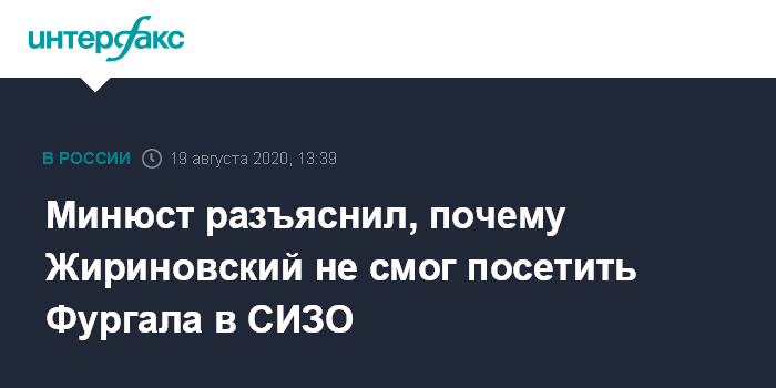 Минюст разъяснил, почему Жириновский не смог посетить Фургала в СИЗО