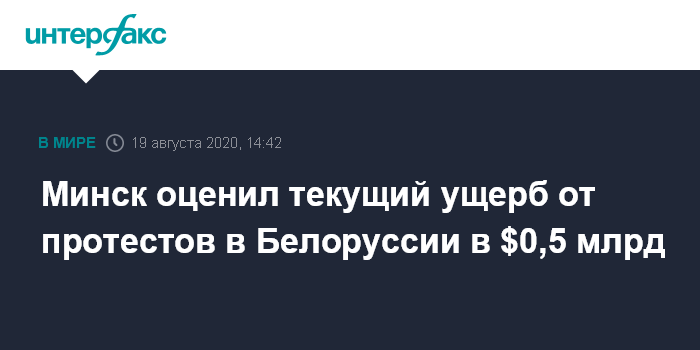 Москва. 19 августа. INTERFAX.RU - Помощник президента Белоруссии по финансово-кредитной системе, доктор экономических наук Валерий Бельский оценил текущий ущерб от протестных акций в стране на уровне $0,5 млрд.