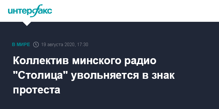 "С понедельника (17 августа - ИФ) сотрудники радио поддержали общенациональную забастовку. С самого утра в эфир не вышла ни одна развлекательная программа. Только новости спорта и прогноз погоды. Во вторник было сказано, что нас увольняют по статье, на что сотрудники согласились, чтобы их так уволили", - рассказал Кондратьев.