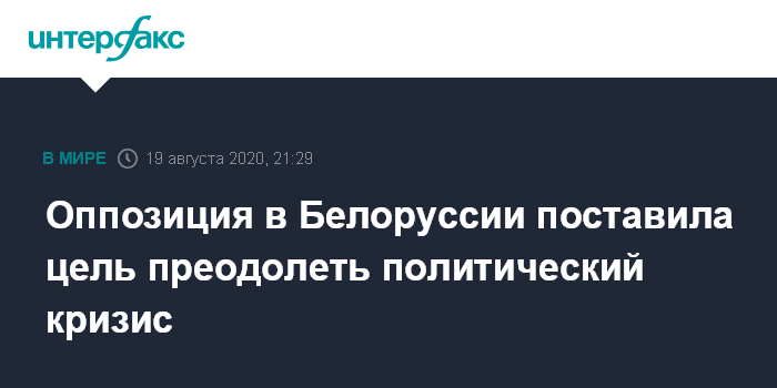Москва. 19 августа. INTERFAX.RU - Координационный совет сторонников экс-кандидата в президенты Белоруссии Светланы Тихановской ставит своей целью преодоление политического кризиса в стране, заявила на брифинге член Совета Мария Колесникова.