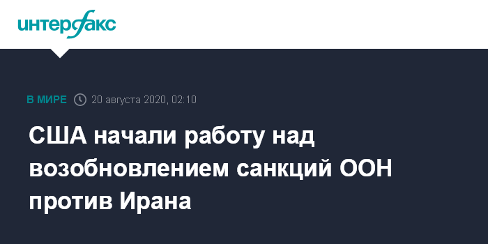 Москва. 20 августа. INTERFAX.RU - Администрация США начала работу над восстановлением санкций ООН в отношении Ирана, сообщил на брифинге американский президент Дональд Трамп.