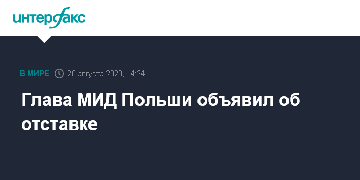 Москва. 20 августа. INTERFAX.RU - Министр иностранных дел Польши Яцек Чапутович в четверг объявил о своей отставке с этого поста, сообщает Associated Press со ссылкой на заявление ведомства.