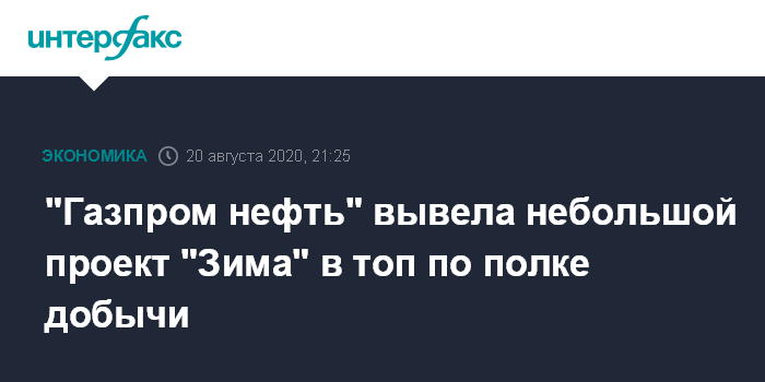 Москва. 20 августа. INTERFAX.RU - "Газпром нефть" за несколько лет вывела небольшой добычной проект "Зима" в ХМАО в топ-3 по полке добычи в портфеле компании и видит большие перспективы роста на нем в ближайшие годы, сообщил начальник департамента по планированию, управлению эффективностью и данными блока разведки и добычи Игорь Шкиров в ходе телефонной конференции.
