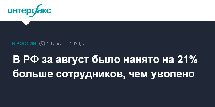В РФ за август было нанято на 21% больше сотрудников, чем уволено