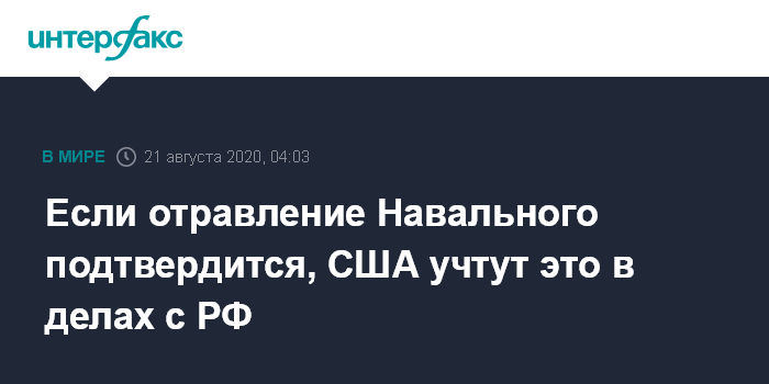 Если отравление Навального подтвердится, США учтут это в делах с РФ