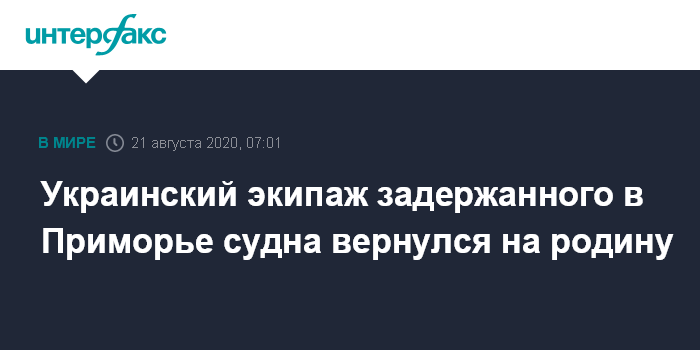 "20 украинских моряков были репатриированы. Четверо из них были списаны по медицинским показаниям и репатриированы за счет страховой компании, остальные 16 человек - за счет судовладельца", - сообщается на сайте Международной федерации транспортников (ITF) на Дальнем Востоке.