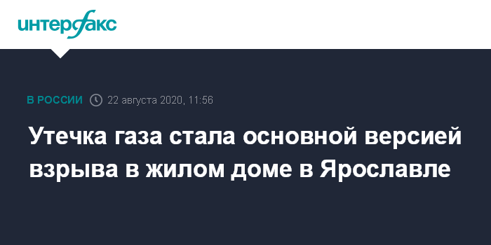 Москва. 22 августа. INTERFAX.RU - Следователи рассматривают утечку газа в качестве основной версии взрыва в многоэтажном доме в Ярославле, сообщает Следственный комитет России в субботу.