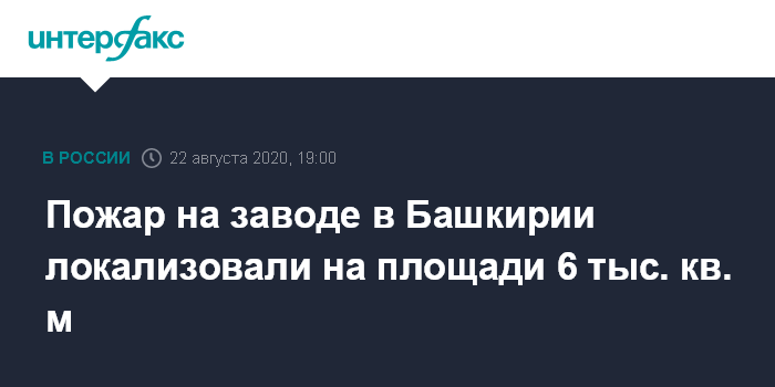 Москва. 22 августа. INTERFAX.RU - Пожар на кирпичном заводе в башкирском городе Давлеканово локализован, сообщила пресс-служба республиканского Главного управления МЧС в субботу.