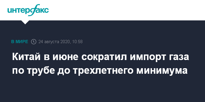 В среднем в сутки Китай в июне 2020 года импортировал 101 млн куб. м – это минимальное значение с сентября 2017 года – то есть почти за три года.