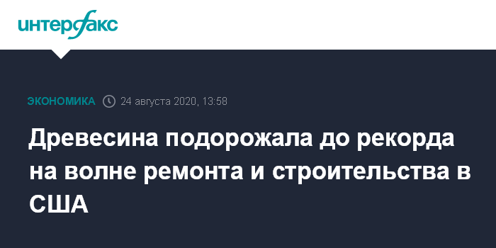 Москва. 24 августа. INTERFAX.RU - Цены на древесину подскочили до рекордного уровня в связи с возросшим спросом в условиях пандемии коронавируса, спровоцировавшей волну реновации жилья в США.