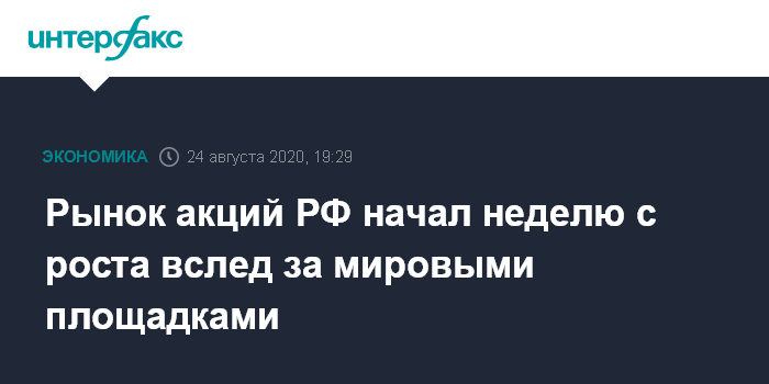 Москва. 24 августа. INTERFAX.RU - Рынок акций РФ начал неделю с роста вслед за мировыми площадками на ожиданиях вакцины от коронавируса COVID-19, что ускорит восстановление мировой экономики. Индекс МосБиржи поднялся в середину коридора 3000-3050 пунктов во главе с обновившими максимум с начала марта акциями "РусАла" на новостях об их включении в индекс FTSE All-World.