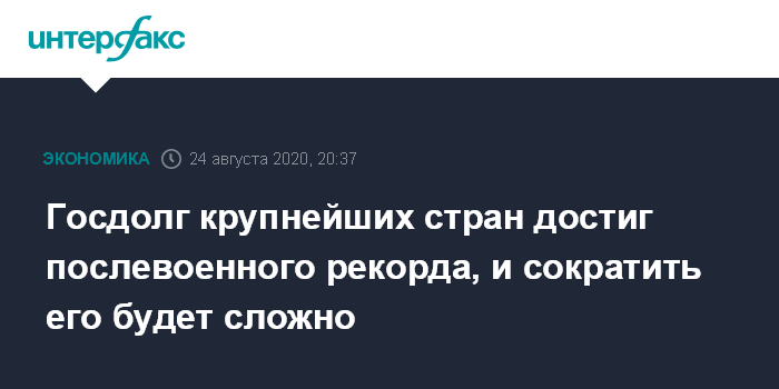 Москва. 24 августа. INTERFAX.RU - Страны во всех регионах мира наращивают расходы на борьбу с коронавирусом COVID-19, в результате чего госдолг достиг уровней, невиданных со времен Второй мировой войны, пишет The Wall Street Journal.