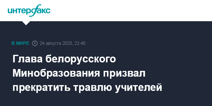 Москва. 24 августа. INTERFAX.RU - Министр образования Белоруссии Игорь Карпенко призвал родителей прекратить нападки на учителей и не превращать школу в поле политических баталий.