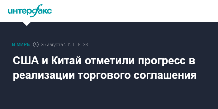 Москва. 25 августа. INTERFAX.RU - Прогресс в реализации первой фалы торгового соглашения между США и Китаем отметили торговый представитель США Роберт Лайтхайзер и министр финансов Стивен Мнучин по итогам телефонной беседы с вице-премьером Госсовета КНР Лю Хэ, говорится в сообщении на сайте американского торгового представительства.