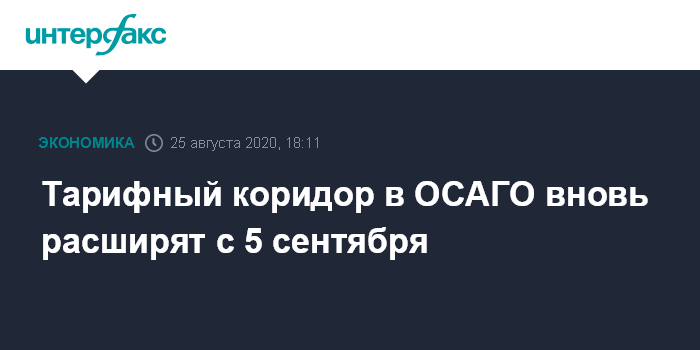 Тарифный коридор в ОСАГО вновь расширят с 5 сентября