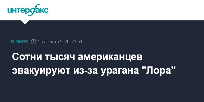 Москва. 25 августа. INTERFAX.RU - Сотни тысяч американцев из городов Техаса и соседней Луизианы должны покинуть свои дома из-за приближения урагана "Лора", который бушует в Мексиканском заливе, сообщает агентство Associated Press.