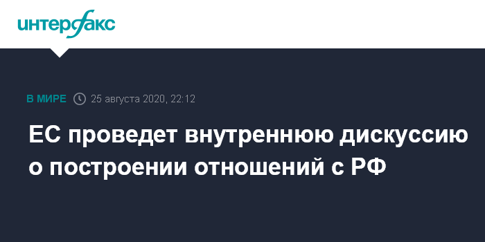 Москва. 25 августа. INTERFAX.RU - Европейский союз продолжит внутреннюю дискуссию о том, как строить отношения с Россией на основе предложенных четыре года назад "пяти принципов".