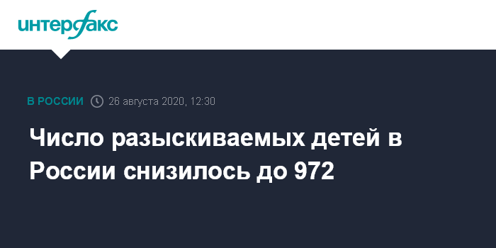 Москва. 26 августа. INTERFAX.RU - Сейчас в России, по данным МВД, в розыске находятся 972 ребенка, в 2019 году число пропавших было на 67,5% меньше, чем в 2018, заявила уполномоченный при президенте по правам ребенка Анна Кузнецова. Она сказала это на онлайн-конференции в честь 10-летия поискового отряда "Лиза Алерт".