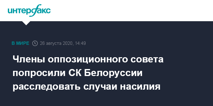 Москва. 26 августа. INTERFAX.RU - Члены Координационного совета Белорусской оппозиции обратились в Следственный комитет Белоруссии с просьбой расследовать применение силы сотрудниками правоохранительных органов на массовых уличных акциях после президентских выборов, заявил "Интерфаксу" исполнительный секретарь совета Иван Кравцов.