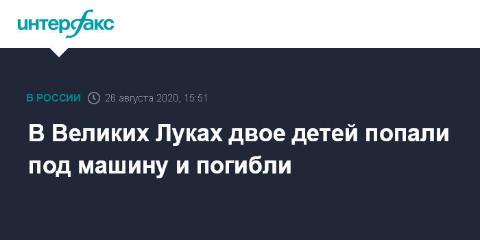 Москва. 26 августа. INTERFAX.RU - В Великих Луках водитель "семерки" сбил мать с двумя детьми, которая шла по обочине дороги в попутном направлении. Погибли дети, одному было четыре года, другому - девять месяцев, сообщили в управлении МВД по Псковской области.