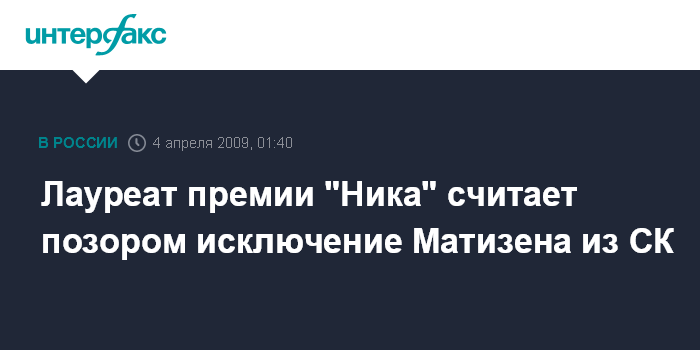 Лауреат премии "Ника" считает позором исключение Матизена из СК