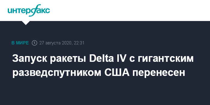 "Запуск миссии Delta IV Heavy NROL-44 теперь намечен на 29 августа. Дополнительное время необходимо для команды в целях выявления проблем в наземной системе управления пневматикой", - говорится в сообщении.