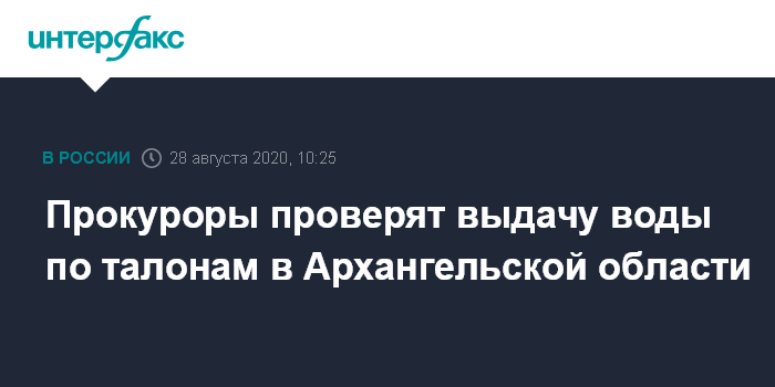Москва. 28 августа. INTERFAX.RU - Генпрокуратура инициировала проверку сообщений о том, что жителям нескольких поселков в Архангельской области питьевую воду будут давать по талонам. Прокуроры узнали об этом из интернета.