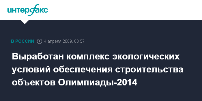 Сочи. 4 апреля. ИНТЕРФАКС-ЮГ - Для обеспечения строительства олимпийских объектов выработан комплекс экологических условий. Об этом заявил накануне министр природных ресурсов и экологии РФ Юрий Трутнев на совещании в госкорпорации "Олимпстрой" накануне.
