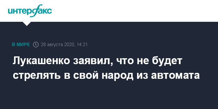 Москва. 28 августа. INTERFAX.RU - Президент Белоруссии Александр Лукашенко счел несправедливой критику за то, что "он с автоматом бегает по улицам", и заявил, что не будет стрелять в белорусский народ.