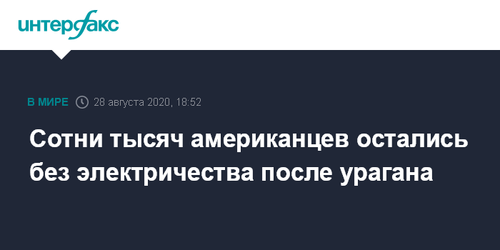 Москва. 28 августа. INTERFAX.RU - Более 750 тысяч домов и предприятий в штатах Луизиана, Техас и Арканзас остались без электричества в результате обрушившегося на США урагана "Лора", сообщает агентство Associated Press.