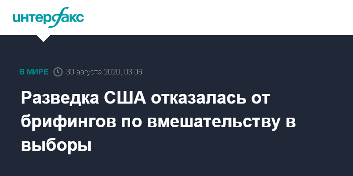 Москва. 30 августа. INTERFAX.RU - Офис директора национальной разведки США больше не будет проводить брифинги по вопросу об иностранном вмешательстве в президентские выборы в ноябре этого года, сообщили CNN и NBC News со ссылкой на документы источники.