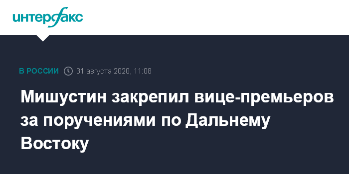 Москва. 31 августа. INTERFAX.RU - Премьер РФ Михаил Мишустин рассказал о подготовленном по итогам его рабочей поездки на Дальний Восток перечне поручений по развитию региона и о назначении ответственных за выполнение каждого пункта вице-премьеров.