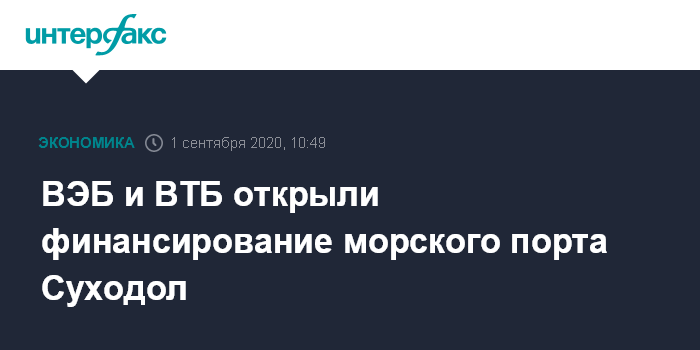 Москва. 1 сентября. INTERFAX.RU - Синдикат ВЭБа и ВТБ открыл финансирование проекта строительства угольного морского порта "Суходол" на Дальнем Востоке, говорится в совместном сообщении сторон.