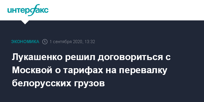 Москва. 1 сентября. INTERFAX.RU - Президент Белоруссии Александр Лукашенко сказал, что надеется договориться с Москвой о тарифах на перевалку белорусских грузов с учетом планов переориентировать потоки этих грузов из портов Литвы в ответ на балтийские санкции. Его цитирует "БелТА".