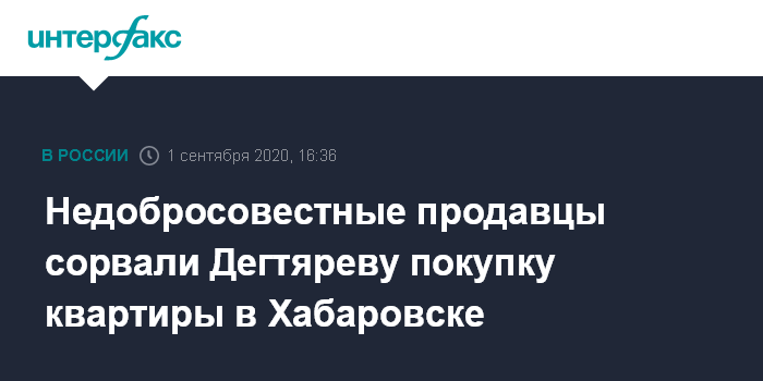 Москва. 1 сентября. INTERFAX.RU - Врио губернатора Хабаровского края Михаил Дегтярев сообщил, что вынужден перенести переезд семьи в Хабаровск из-за недобросовестных продавцов недвижимости.