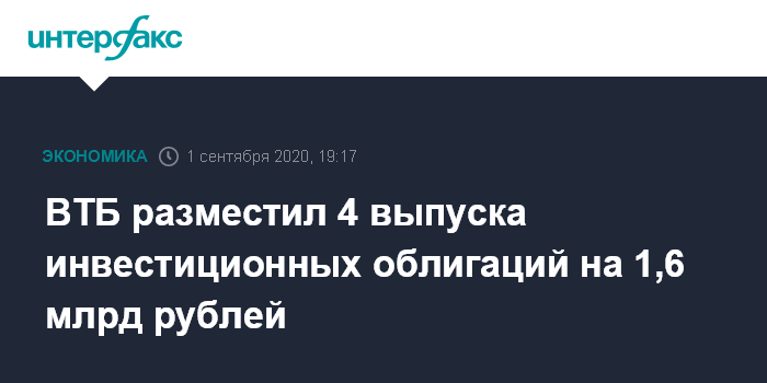 ВТБ разместил 4 выпуска инвестиционных облигаций на 1,6 млрд рублей