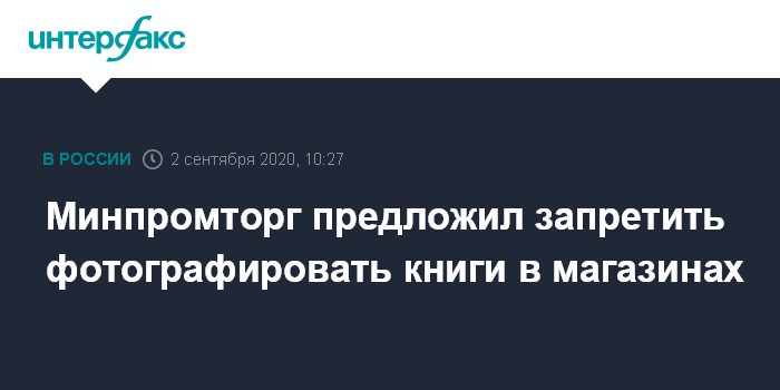 Москва. 2 сентября. INTERFAX.RU - Минпромторг предложил запретить покупателям копировать или фотографировать книги в магазинах и предложил отменить требование, чтобы у торговой точки была книга жалоб и предложений. Об этом говорится в проекте новых правил розничной торговли, в том числе дистанционной, обмена и ремонта товаров.