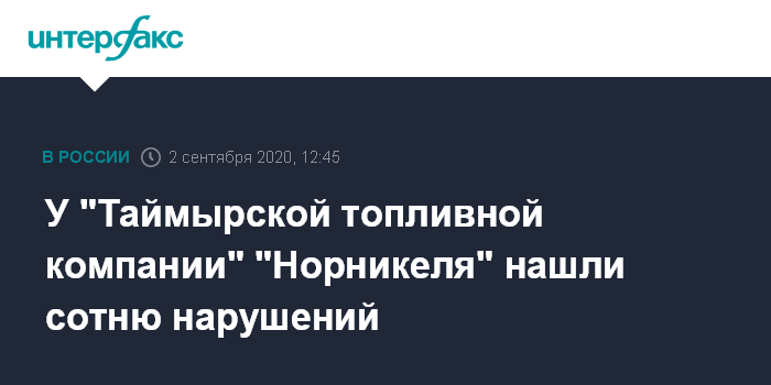 У "Таймырской топливной компании" "Норникеля" нашли сотню нарушений