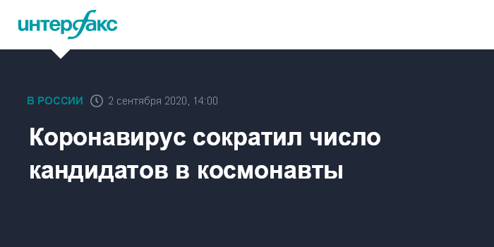 Москва. 2 сентября. INTERFAX.RU - В 2020 году из-за коронавируса сократилось число заявок на участие в наборе в отряд космонавтов, рассказал изданию госкорпорации "Роскосмос" "Русский Космос" начальник Центра подготовки космонавтов (ЦПК) имени Гагарина Павел Власов.