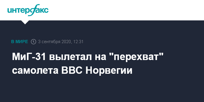 1 сентября российские военные также сообщали о "перехвате" истребителем МиГ-31 норвежского Р-3С "Орион" над Баренцевым морем. В тот же день истребитель Су-27 "перехватил" самолет ВВС Германии над Балтийским морем.